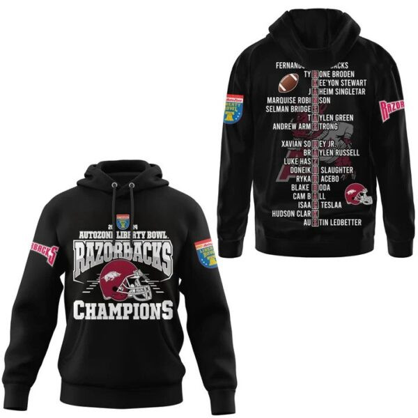 Arkansas Razorbacks Liberty Bowl Players List NCAA Hoodie Presents For Basketball FansExpress Your Creativity with Our 3D Printed Apparel CollectionStep into a world of personalized fashion and eye-catching design with our 3D Printed collection. Whether you are dressing for daily life or gifting something special, our products blend bold style with high quality crafted for thosewho value uniqueness and creativity.Why Choose Our 3D Printed ProductsHigh-Quality MaterialsOur products are made using high-quality 3D printing on fabrics commonly made of 100% polyester or 85% polyester + 15% spandex (for added stretch and comfort). This ensures vibrant colors, smooth textures, and long-lasting wearability.Unique Designs Just for YouChoose from our exclusive library of striking 3D print designs, or explore seasonal themes and trending looks-perfect for standing out in any crowd.Vibrant & Durable PrintsWith cutting-edge 3D printing technology, each piece features high-resolution artwork that remains sharp and vivid wash after wash.Eco-Conscious ProductionMade to order, our process reduces overproduction and helps promote sustainable fashion-good for you and good for the planet.Versatile & ComfortableIdeal for casual wear, special events, or unique gifts, our 3D printed apparel delivers standout style without compromising comfort.Shipping TimePlease allow 10-20 days for delivery, depending on your location. Each item is made to order with care. Thank you for your patience and support!
