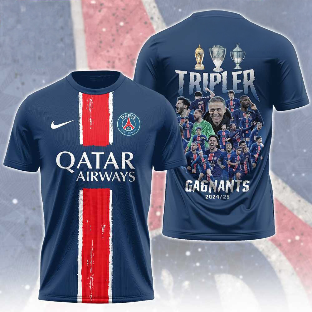 Paris Saint-Germain Champions Shirt 2025 PSG Merch UEFA Tripler Gagnants T-Shirt