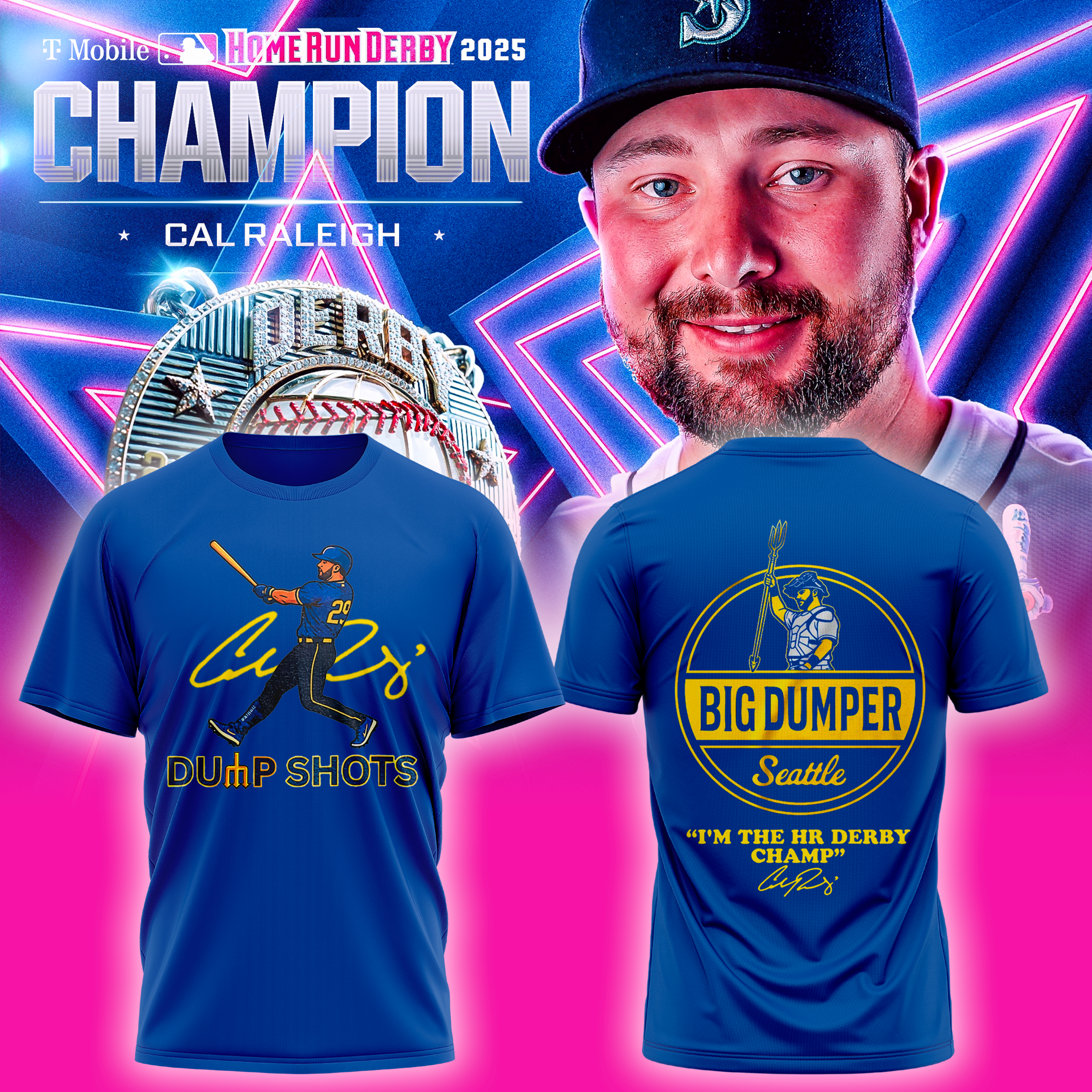 Seattle Mariners Shirt Cal Raleigh Dump Shots Home Run Derby Champion 2025 T-Shirt